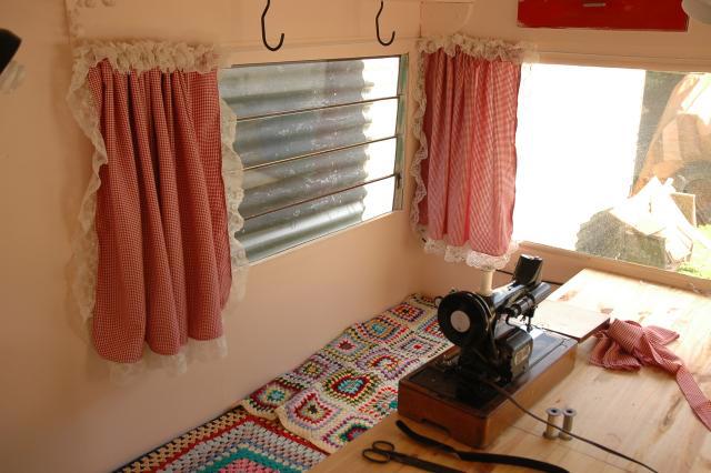 This year we plan to stay in a caravan instead of tents. Because of the high rainfall... AND the Sandfly problem, we decided we needed a little comfort. You know, it's not a very nice feeling to awake from a deep sleep to see the roof of the tent too close for comfort! Phew! That was scary! Not only that, but we almost wore out the zips on the tent doors. We had to keep the Sandflys and the Bumblebees out somehow! So we decided upon a caravan... it had to be an old caravan not only because we like old things, but also because we felt that an aluminum caravan would be shaken to bits on the rocky trails up the riverbeds. The modern type of caravan is also very low slung. That is, they have torsion bar suspension which makes the caravan very low... a very good idea because you don't have to clamber up a cliff each time you wish to go in or out! Well, we aquired our caravan... an old classic caravan from the early 1960's. It's made of plywood and has a leaf spring suspension like old cars and trailer use to have years ago. We put the axle under the springs instead of on top of them, which gave us about 6 inchs more height. We also put larger wheels on it, and altered the drawbar to take hydralic brakes. To date we have almost finished painting out the inside, and only have the outside left to do... that is after we renew the bench top and put some book cases and pictures on the interior walls. Yes, it's going to be fun... real fun living in a caravan up in some of New Zealand's finest scenery. At the present time we are unsure exactly when we will make the "Second Expedition" as we are very busy working. It will possibly not happen until early in the New Year, but once the caravan is finished and we have finally worked out how we will tackle this years exercise, we will be almost ready to set off... until then, keep watching! After so many months hard work we are finally almost ready to leave on another episode of our adventure. Just a few more jobs to do, then hurrah to work... we'll be off!!! We are currently in the middle of painting the caravan in very classic colour... cream and maroon. Adam has made brand new curtains for it, with the help of an antique Singer sewing machine. Yes, they look very pretty with their lacy frills! More like a gipsy caravan of a by gone era! Because the caravan only had 3 berths we had to redesign the interior to make it sleep four. So now, the front end has two very short beds with a pull out section each that makes two very comfortable 6 foot beds! Adam cut up a couple of old fashioned (real) rubber double mattress', then stitched up some coverings from second had duvet covers!!! He is currently making new curtains for our holiday bus.
