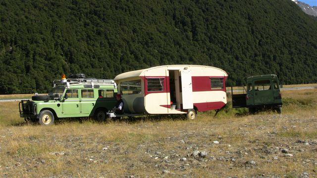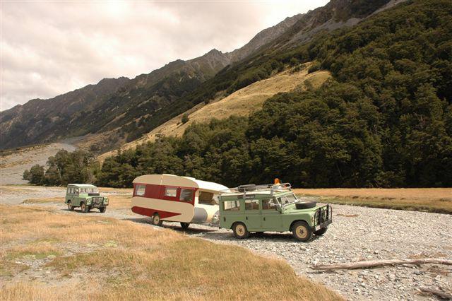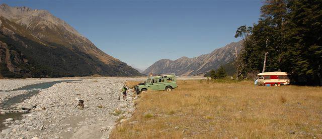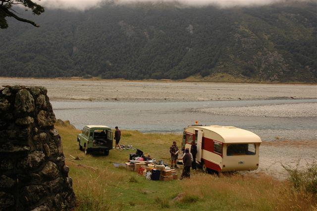 Well! What an incredible time we have had to be sure! I scarcely know where to begin!!! But I will try to relate our adventures in the best way I can... After leaving home on 4th February 2010 we headed south; south to Lake Ohau, and what turned out to be a rather exciting time! With such a large convoy we had to travel slowly along the highways and byways to our destination. High speeds were out of the question. Several days journey found us in Omarama, and our first port of call was to Lex and Jan Perriam, the kindly couple who own the Huxley Base Camp. We stayed the night with them before making the trip up to the Base Camp. Once at the Base we had to plan how everything was to be carted up the river to where we planned to camp... the same location as last year. Our goods and chattels had to be rearranged to suit, as much of the load was being carried in our holiday bus, a 1952 Leyland Comet.