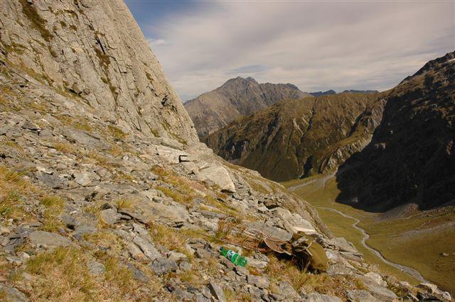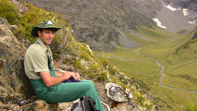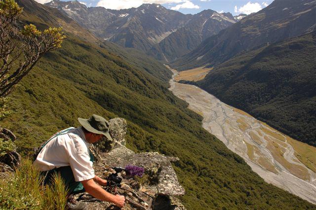It was in Paradise Valley. Three of us climbed up to the ridge between the Huxley and Paradise Creek in the morning. We had lunch together at the top then split up. Simon stayed as radio link on the ridge… although he went to the 5500ft level. I dropped into Paradise Valley and walked to the top end. It was a rough trek through alpine grassland strewn with large rocks. My job was to check out the bush content in the valley.