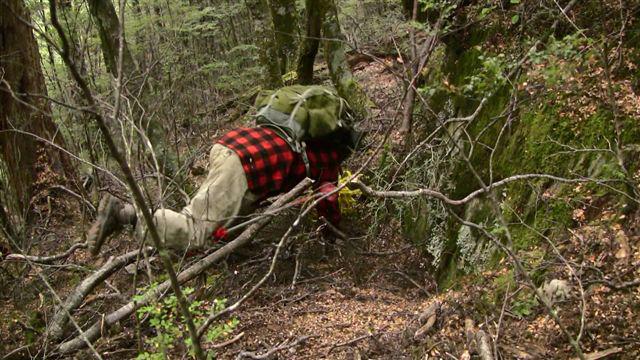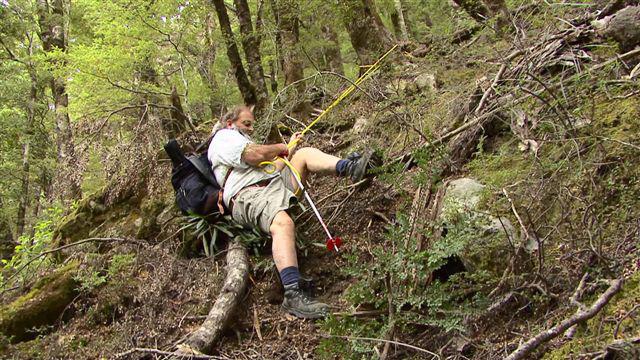Hoisting my heavy backpack onto my back and slinging my Mauser 8mm rifle over a shoulder, I glanced at the GPS to verify the route down hill. It was a course I'd never taken before, so I was totally unaware of the pitfalls ahead. But unhesitatingly I started to clamber down. The first bit wasn't too bad, just some thick scrub to barge through. Then suddenly a cliff edge ahead. What way now? I looked to the right and left. Nothing! Then I spied a gap through the bush where I may be able to push through. Once through the gap I saw another outcrop I'd have to descend. This time there was no choice but to climb down. Although it was steep there were lots of smaller trees to hang onto, so at this stage I didn't need my rope. I was also using a ski pole to steady myself. I had climbed down the mountainside in this manner several hundred feet when disaster hit. Stepping onto a flat ledge covered with dead beech tree leaves, I went to climb down, but somehow I overbalanced and pitched forward over into the abscess. I have fallen over a cliff once before, and I don't like the feeling of not knowing what you are going to hit at the bottom! But last time was at night, in heavy rain at the back of Reefton. But that is another story! But here I was… a bright sunny day and I was falling face downwards! As I fell forwards I closed my eyes and waited for the bump which would herald the end. After what seemed like an age the bump came. Amazingly where I landed 15 feet down, the ground sloped away from the bottom of the cliff. So when I hit the ground I didn't hit with full force… rather I "skidded" downhill at a great rate of knots. Even so my pack being so heavy came down on top of me like a ton of bricks. I was winded completely! My rifle somehow got tangled under me… with my ski pole twisted to one side. After hitting the bottom of the cliff it was wasn't over. I slid forward to come to a VERY abrupt stop against a tree. I will never forget opening my eyes… to see this massive tree trunk in front of me. I couldn't believe I was still alive! Every part of me ached… and no jolly wonder! My fingers had been twisted backwards and almost sprained. My back was sore from the thump I got when I landed at the bottom of the cliff. It took a few minutes to recover and count my injuries. Needless to say I took exceptional care with the rest of the decent, I assure you!