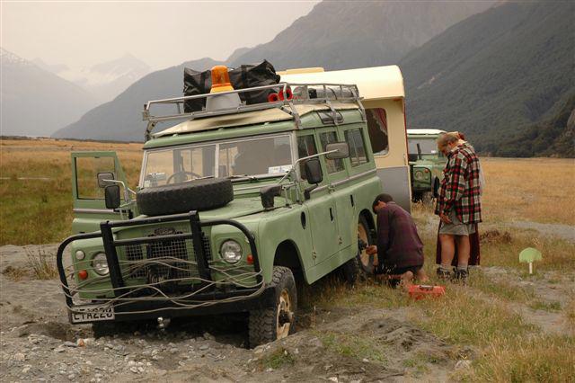 Well, so we had got into a pretty sticky problem. The caravan was sitting out in the middle of the Hopkins River with the Nor' West wind rising fast. Being in such an exposed position we were very worried that the caravan would be blown over. We had a blown diff in the LWB Land Rover, and being a high ratio diff head they were not very easy to come by... Finally to top things off we had a huge hole in the diff housing. What could we do to solve all these problems?