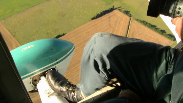 Simon had been getting the full brunt of the blast and hadn't let out a peep about it! He had stayed at his post and kept on filming the whole time, and was rewarded with some of the most incredible air to air footage! I felt really sorry for Simon, because although my own legs no longer felt part of me, I was reasonably sheltered behind the front bulkhead or instrument panel. I couldn't see the Pilot as my back was firmly against his seat, but Simon told me later the Pilot was starting to feel most uncomfortable too.